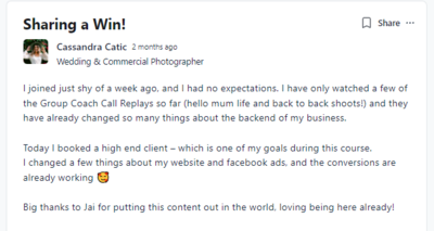 “It’s an absolute gamechanger and hands down the best thing I’ve ever done for my biz”